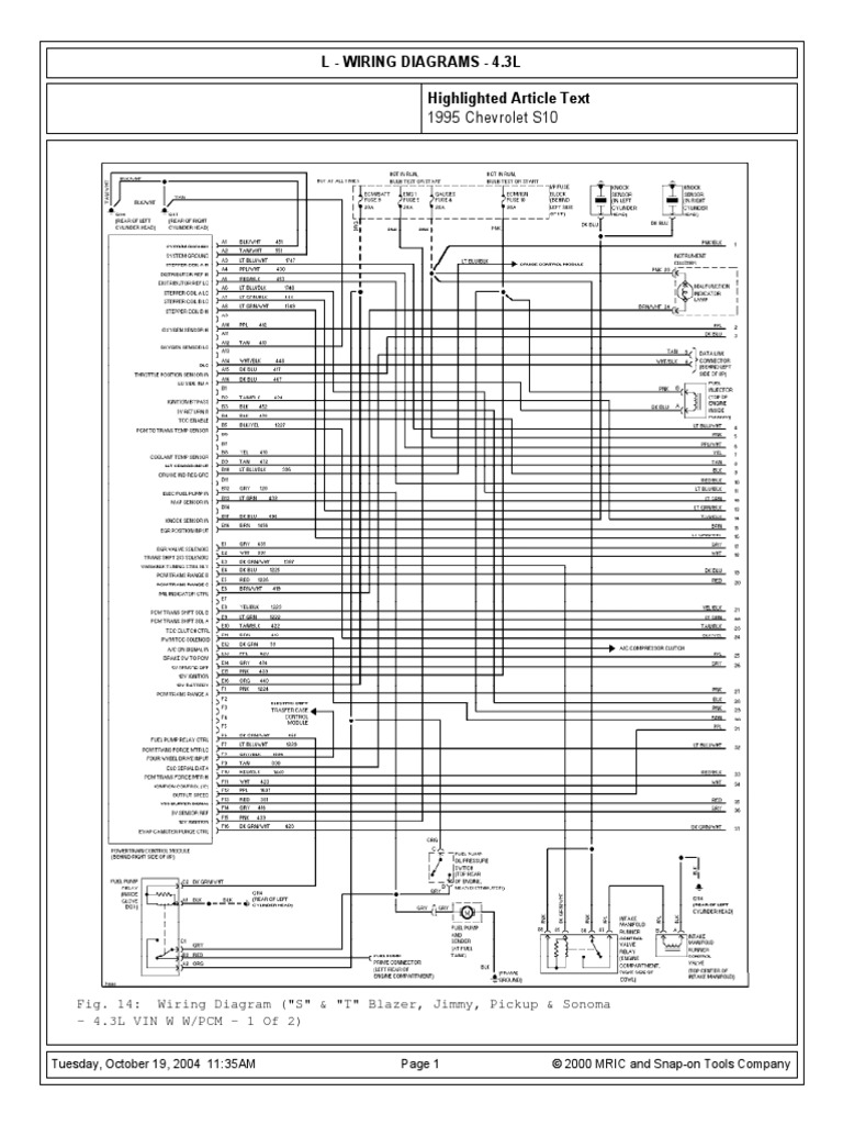 1995 Chevrolet S10 L Wiring Diagrams 4.3L Highlighted Article Text